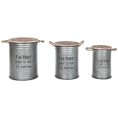 Home ESPRIT Set of Chests Silver Dark Brown Metal Vintage 38 x 48 cm