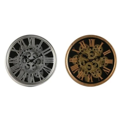 Home ESPRIT Wall Clock Black Gold Silver Metal Glass 25 x 6.3 cm (2 Units)