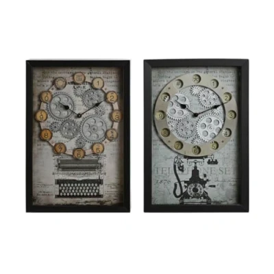 Home ESPRIT Wall Clock Yellow White Black Grey Metal Glass Vintage 27.5 x 6.5 40.5 cm (2 Units)