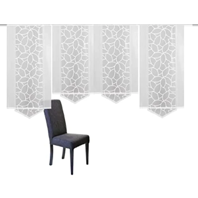 Semi-transparent fabric Panel curtain set jacquard patterned Inkl. flexible rod and panel at the bottom With beautiful triangular bottom Dimensions: 145/57 cm
