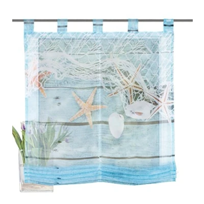 Home fashion Looped Roman Blind Voile Digital Print Maritime Polyester Blue 140 x 120 cm