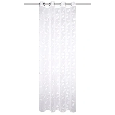 Ready-made curtain made of semi-transparent fabric with embroidery and 8 metal eyelets, hemmed hem Dimensions: 245 cm high, 140 cm wide With 8 metal eyelets for hanging on the curtain rod Seamed sides and hem Material: 100 % polyester. Care: 30 °C on a gentle cycle