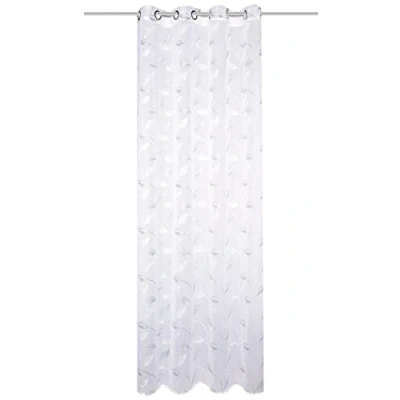 Amazon Ready-made curtain made of semi-transparent fabric with embroidery and 8 metal eyelets, hemmed hem Dimensions: 245 cm high, 140 cm wide With 8 metal eyelets for hanging on the curtain rod Seamed sides and hem Material: 100 % polyester. Care: 30 °C on a gentle cycle
