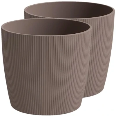 Durable striped design — made from solid, crack-resistant plastic, these striped plant pots provide reliable support for small to medium indoor plants, combining everyday practicality with modern style. No drainage holes — the closed base prevents leaks and protects shelves and windowsills, making these plant pots indoor a clean and convenient choice for any house plant display in your living room, kitchen or office. Modern horizontal stripe pattern — the subtle decorative lines give each indoor plant pot a contemporary look that works beautifully as stylish flower pots, enhancing minimalist, classic or boho interiors. Wide range of compatible plant types — available from 13 cm to 30 cm, these plastic plant pots fit many popular varieties including orchids, aloe, snake plants, peace lilies, ZZ plants, succulents, mint, cacti, and herbs, making them a versatile choice for everyday planting. Practical 2-piece pot set — each pack includes two matching containers, ideal for creating symmetrical or coordinated arrangements at home or work, offering a functional option for large plant pots indoor and a cohesive pot set.