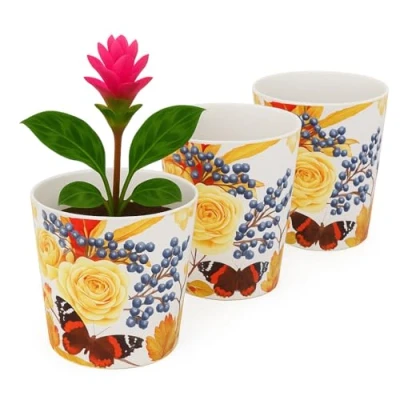 Decorative patterns for stylish plant pots indoor (13 cm / 5.1 inch): Floral and tropical designs bring a vibrant decorative touch to your plant pots indoor, enhancing shelves, windowsills and any room décor. Inner cone supports moisture balance in orchid pots: The practical inner cone helps maintain balanced moisture around the roots, making these orchid pots ideal not only for orchids but also for herbs, small ferns and moisture-loving houseplants. Set of 3 decorative plastic plant pots: This set includes three coordinated plastic plant pots that suit a wide range of plants, such as succulents, peperomia, African violets or small leafy plants, while keeping your home décor consistent. Durable alternative to ceramic flower pots indoor: Strong plastic construction offers a practical, less fragile alternative to ceramic flower pots indoor, making them easier to move and safer for everyday use. Versatile planter for a variety of houseplants: This multifunctional planter works well for orchids, herbs, begonias, pothos, and other compact indoor plants, fitting seamlessly into living rooms, kitchens, bedrooms and office spaces.