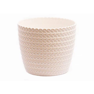 Home Garden Ornaments Plant Pots Indoor 14cm Diameter 12cm Height Decorative Pot Knitted of Creamy Colour Plastic Flower and Outside (Ø14cm, Creamy)