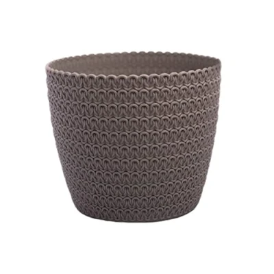 Home Garden Ornaments Plant Pots Indoor 16cm Diameter 14cm Height Decorative Pot Knitted of Taupe Colour Plastic Flower and Outside (Ø16cm, Taupe)