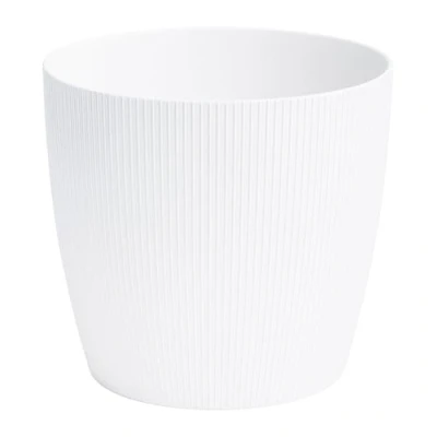 Home Garden Ornaments Plant Pots Indoor 18cm Diameter Round and Plastic Pot of White Colour Striped Flower Decorative Outside (Ø18cm, White)