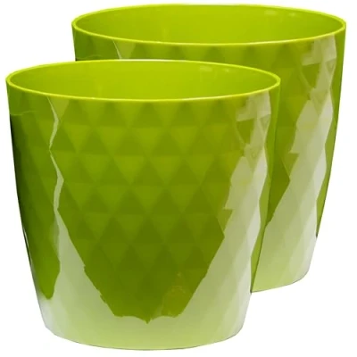 Home Garden Ornaments Plant Pots Indoor, 2 Pack, No Holes, Glossy Crystal Look, Decorative Plastic Planters (Green 14cm / 5.5 inch)