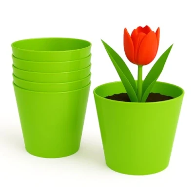 Home Garden Ornaments Plant Pots Indoor 6pcs Glossy Decorative Plastic Flower Pots, Vibrant (Green, 17 cm / 6.7 in)