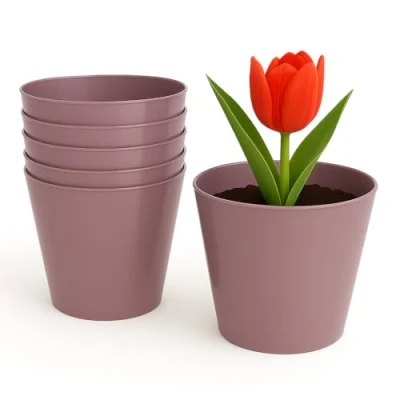 Home Garden Ornaments Plant Pots Indoor 6pcs Glossy Decorative Plastic Flower Pots, Vibrant (Heather, 20 cm / 7.9 in)