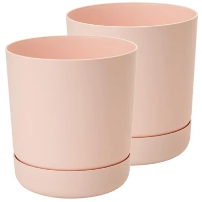 Set of 2 in Multiple Sizes – this practical 2-pack of plant pots comes in 13, 15, 17, 20 and 25 cm, perfect for different houseplants, herbs or flowers. A versatile plant pot set for any home or garden. With Drainage Holes & Saucer – each flower pot includes drainage holes and a snap-on saucer, allowing excess water to drain easily. These outdoor planters with drainage help protect roots and keep your surfaces clean Stylish Matte Finish – the plant pot has a modern satin-matte look in trendy pastel colours. These decorative flower pots add an elegant touch and fit seamlessly into any interior décor or outdoor setting. Indoor & Outdoor Use – durable plastic construction makes them suitable as plant pots indoor or for outdoor use on a balcony, patio or garden. Weather-resistant and easy to clean, ideal for everyday use. Functional & Decorative Gift Idea – a plant pot with saucer that combines practicality with style. These flower pots are a thoughtful gift for plant lovers, adding both beauty and functionality to their home.
