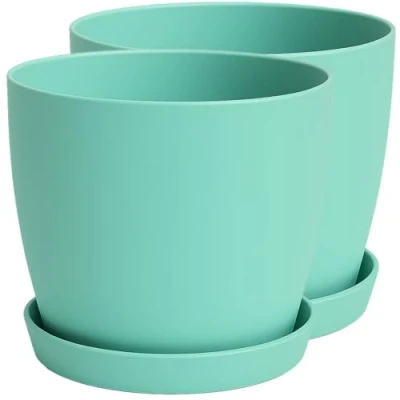 Home Garden Ornaments Plant Pots Indoor, Set of 2 with Saucers,6 Pastel Colours, Indoor Pot, 8 Sizes (Green, 30cm)
