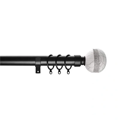 Home Harmony® Marble Diamante Finial Telescopic Extendable Curtain Pole set In Black or Silver and Matching Holdbacks Available (Black, 180 320 cm)