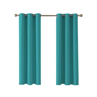 Home In Style 4U Blackout Thermal Insulated Window Curtains for living room 2 Panels Turquoise 46" width x 90" drop Ring Top Eyelet Curtain with Tie Backs