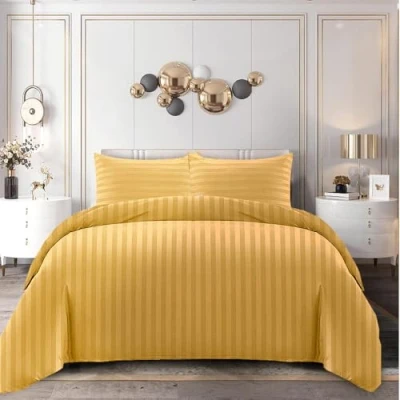 Home In Style 4U Super King Size Duvet Cover Set Ochre, Microfiber Satin Stripe Hotel Bedding with Pillowcase, Ultra Soft Breathable Reversible Hypoallergenic Quilt Bed Covers