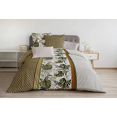 Contains 3 pieces: 1 duvet cover 240 x 260 cm concealed buttonhole + 2 pillowcases with Oxford finish (flat stitched frill) 63 x 63 cm 100% cotton in 57 threads/cm² in tight weave for superior quality 1 duvet cover and 2 pillowcases with flap closure (Oxford finish / flat stitched frill) Easy care: washable at 40 °C and tumble dryer-safe. Oeko-Tex label Comfortable and durable