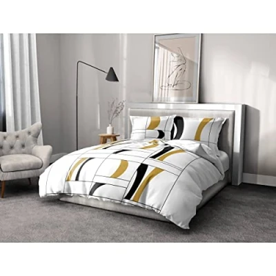 Home Linge Passion Duvet Cover 2 Pieces 100% Cotton 57 Thread Count 1 Person 140 x 200 cm Atoll Black Mustard