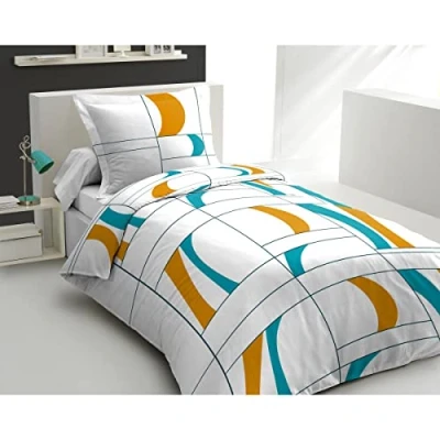 Home Linge Passion Duvet Cover 2 Pieces 100% Cotton 57 Thread Count 1 Person 140 x 200 cm Atoll Turquoise Orange