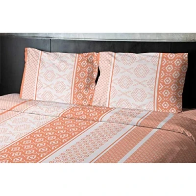 Home Linge Passion Ethnora 57 Thread Count 100% Cotton 4 Piece Bed Sheet Set, Orange/White, Big
