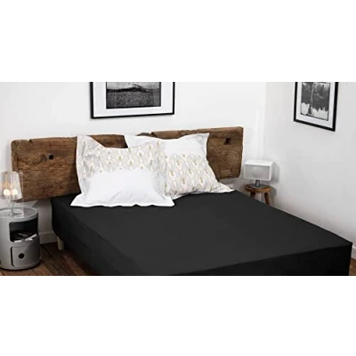 HOME LINGE PASSION, Fitted Sheet, Black, 180 x 200 cm + 35 cm, 100% Cotton, 57 Thread Count, Oeko TEX Label