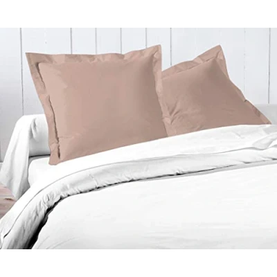 Home Linge Passion Ruffled Flat Cotton 57 Thread Count Pillowcases 25x25 Inch (2 Pack) Dusky Pink, Rose, 63x63 cm