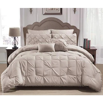 Home Maison Esmalinda Pintucked 7 Piece Comforter Set, Taupe, Queen