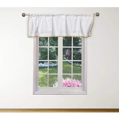 Bring a fresh, fashionable and elegant look to any room with this small kitchen window curtain featuring a fresh stunning Solid design. They will provide you the necessary privacy and allow just the right amount of light into any room. Each curtain made of jacquard fabric. Perfect for a kitchen, laundry room or guest bathroom. Measures 58x15" (1 Piece) Included: (1) Valance Polyester Bring elegance to your home with these fashionable Solid Kitchen Valance that will add a touch of elegance at the same time being practical. Provides privacy and filters light.