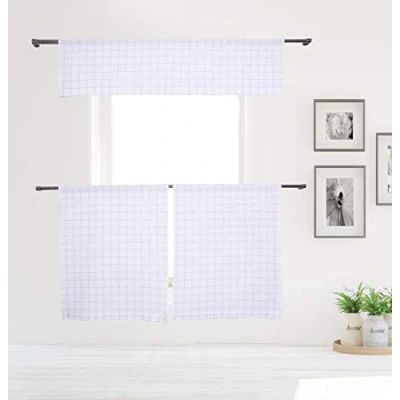 Bring a fresh, fashionable and elegant look to any room with this small kitchen window curtain featuring a fresh stunning Checker design. They will provide you the necessary privacy and allow just the right amount of light into any room. Each curtain made of jacquard fabric. Perfect for a kitchen, laundry room or guest bathroom. Measures 58x15" (1 Piece) 29x36" (2 Pieces) Included: (1) Valance & (2) Tiers Polyester Bring elegance to your home with these fashionable Checker Kitchen Curtain that will add a touch of elegance at the same time being practical. Provides privacy and filters light.