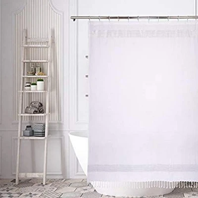 Quickly create a fresh new look with this Home Maison Stripes with Tassels Shower Curtain Cotton fabric, the high-quality curtain hangs gracefully from top to bottom, while its stylish pattern invokes a feeling of calm and coordinates effortlessly with surrounding decor. Transform any bath into an elegant spa-like oasis with the fabric shower curtain. Cotton The rich White-White-Silver pieced with a Stripes with Tassels manipulation makes you feel like you're in the spa while the 3M water repellent treatment keeps your curtain looking newer, longer Waterproof: Extremely durable fabric, it prevents water splashing outside the bath area floor. On the other hand, our smooth texture curtain will last long for using. Machine Washable & Quick Dry: After taking shower, the shower curtain could be washed by washing machine for measurement, it is made by quick
