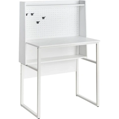 Home Office Desk White Particle Board with Open Shelves Pegboard Wall BUXTON