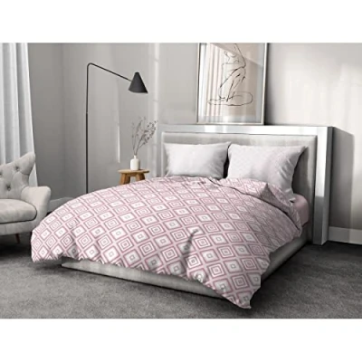 Home Passion 3 Piece Duvet Cover Set 100% Cotton 57 Thread Count Double 240 x 260 cm Fox Trot White & Powder Pink