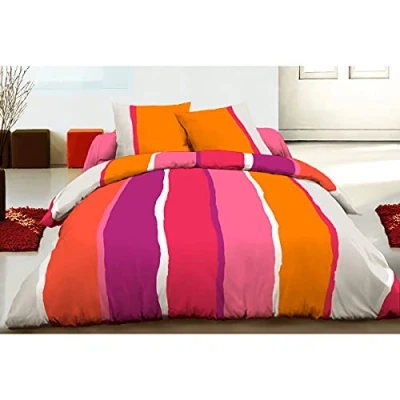 Contains 4 pieces 1 Flat Sheet 240 x 300 cm + 1 Fitted Sheet 140x190 cm + 2 taies 63 x 63 cm) Products 100% cotton tissage serré, 57 fils/cm² Resistant to Many Washes: colors remain bright, no white marks