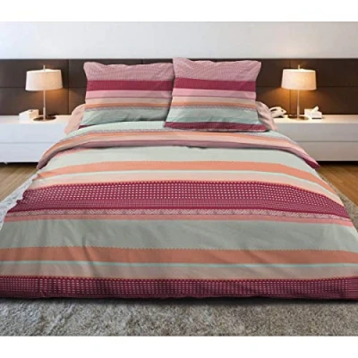Contains 3 pieces: 1 duvet cover (220 x 240 cm and 2 pillowcases 63 x 63 cm) This 100% cotton – 57 threads High Tensile crystal packaging élegant in PVC bag with hook Resistant to Many Washes: colors remain bright, no white marks