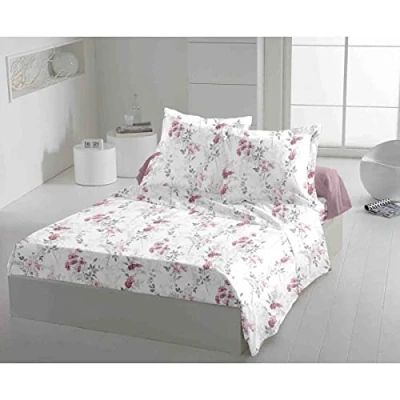 Home Passion Bed Linen Set 3 Pieces 100% Cotton 57 Thread Count Double 240 x 300 cm Pompadour White & Old Pink