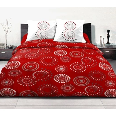 Home Passion Fireworks 3 Piece Red 100% Cotton 57 Thread Count, Duvet Cover Set, Multi, 240 x 220 0.1 cm