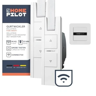 Take control of your roller shutters: With this electric belt roller you have control of your roller blinds. The Pure version is the simple and effective version. Control your roller shutter at the touch of a button. 【Discreet & Quick Installation】Pure strap winder is ideal for replacing an existing manual strap reel, which supports a roller shutter of up to 45kg with a strap width of 23mm. For installation, simply insert it into the existing wall with a width of at least 36 mm, attach and plug it in and you're done. Your electric strap winder is ready to use Smart Strap Winder - The Pure Smart strap winder has large on/off buttons for manual use. Thanks to the "smart" addition, you can easily combine it with other smart products (wall buttons, sensors, etc.) or control it with our Smart Home control unit (Gateway premium) via the app. Home Pilot. Practical addition: in this set, in addition to the RolloTron, a smart battery-operated wall button is included. Thanks to a double-sided adhesive film, it can be placed according to your wishes and you can control your RolloTron via the wall button. Place the wall button for example near the bed so you don't have to get up in the morning to mount the roller shutter. Energy saving: regulate the temperature in your home, avoid overheating in summer and warm your home in winter. This allows you to limit the use of your heating/cooling and save energy. Made in Germany: Home Pilot is a RADEMACHER brand. Specialized in sun protection and energy management, Home Pilot allows you to achieve optimal home automation. All strap reels are made in Germany., Manufacturer: Home Pilot