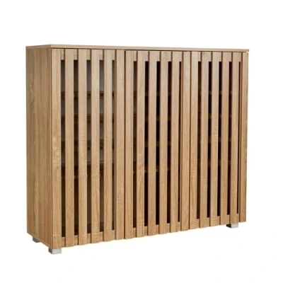 Home Source 3 Door Wooden Shoe Storage Cabinet Rack Stand, Slatted Cupboard, Oak Effect