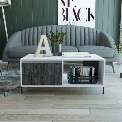 General description Our coffee table features a useful drawer with a concealed handle alongside a dual access open space, ideal for books and magazines. It is made from easy-to-clean, hardwearing white and carbon grey oak effect melamine finish with real metal hardware. Technical specifications Dimensions: (W) 92.5cm (D) 55cm (H) 40cm