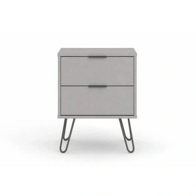 Home Source Bedside Cabinet Lamp Side Table, Textured Grey Finish, Hairpin Legs, 2 Drawer, Engineered Wood