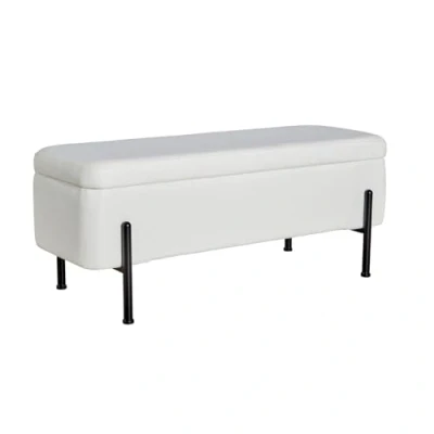 Home Source Boucle Fabric Storage Ottoman Blanket Box, Black Metal Legs, White