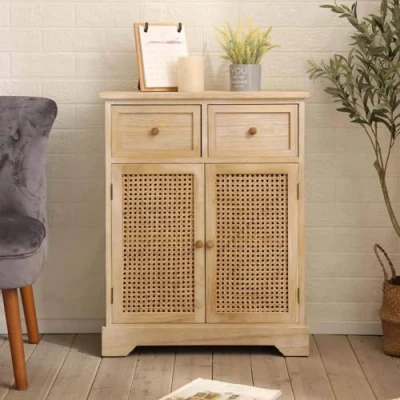 PRACTICAL STORAGE: The drawers and cupboard shelving offer a wealth of space to help keep your home tidy. RUSTIC DESIGN: The cupboard frontage features a rustic design and decorative small knob style handles for easy opening. It has a natural wooden finish that will complement other wooden style pieces and accessories HIGH QUALITY MATERIALS: The cabinet is crafted from solid paulownia wood which ensures the frame is built to last and is secure and sturdy. Wipe down with a clean dry cloth to keep in immaculate condition DIMENSIONS: (W) 60cm (D) 29cm (H) 75cm NO ASSEMBLY REQUIRED - Say goodbye to assembly hassles, as this cabinet comes ready to use - no assembly required. Simply unbox, and it’s ready to add a dash of charm to your space!