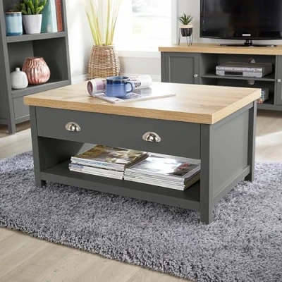 AmazonCONTEMPORARY LIVING: Perfect for modern living, this stylish table is more than just a convenient area to place your favourite beverage. Boasting 2 spacious drawers, the coffee table features a two-tone design with a contrasting oak effect top. DURABLE: Crafted with care, the coffee table is made from solid MDF, simply wipe down with a clean dry cloth to keep in immaculate condition. AVON: Transform your home with coordinating products in the Avon range. From side tables to chest of drawers, ottomans and bookcases. DIMENSIONS: Width 90cm, Depth 58cm, Height 45cm. EASY ASSEMBLY: Arrives flat packed with clear instructions for home assembly.