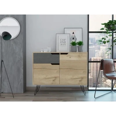 CONTEMPORARY DESIGN: The Dinan sideboard provides ample cupboard space for various uses. The double doors offer easy access for storage, and the single drawer above enhances the loft-style aesthetic. DURABLE: Built with strong materials and a hardwearing, easy-to-clean melamine finish, this sideboard cupboard is engineered for long-lasting durability, making it a reliable addition to any room STYLE: The Dinan furniture collection showcases a luxurious, durable melamine finish with a bleached pine effect, accented by stone effect doors, drawer fronts, and profiled handles. Supported by black metal hairpin legs, each piece is designed to maximise storage and functionality while making a striking style statement DIMENSIONS: (W) 99cm (D) 39cm (H) 80cm ASSEMBLY: Arrives flat packed with clear instructions for home assembly. Please note this item is delivered in multiple boxes which may arrive at different times.
