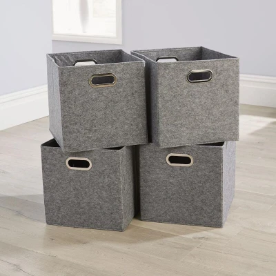 Home Source Cube Storage Boxes, Collapsible Fabric Baskets, Foldable Canvas Organising 4 Piece, Felt Grey
