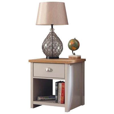 LANCASTER LAMP TABLE GREY by GFW. Designed to look the part and made to last Ñ This charming lamp table will bring contemporary styling to any home. Features include a handy drawer with a satin silver handle and a useful storage shelf underneath. Its matt grey finish and oak veneered top matches perfectly with the rest of the Lancaster range and would be at home in any living or dining room.. Crafted from particle board Finish: Paper Foil Colour: Grey, Oak Includes clear assembly instructions Product Details Dimensions: 50cm (H) x 45cm (W) x 45cm (D) Material: Particle Board Finish: Paper Foil Colour: Grey Secondary Colour: Oak Finish the look with pieces from our bedside cabinets. Explore more in bedroom furniture.