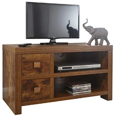 Home Source Particle Board Study Walnut Effect 2 Drawer 1 Shelf TV Stand Entertainment Unit
