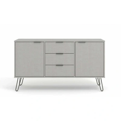General description A great combination of drawer and cupboard space, our industrial styled medium sideboard is finished in an easy to clean grey textured melamine finish with real metal handles and feet. Technical specifications Width: 131 cm Depth: 43 cm Height: 74 cm