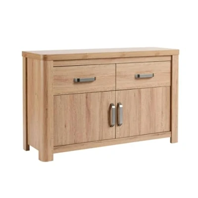 CONTEMPORARY DESIGN: Style up your living space with this oak effect finished sideboard. Featuring two drawers storage and generous cupboard space, this cabinet brings a sophisticated and stylish flair to any interior decor HIGH QUALITY MATERIALS: Made from high-quality, sturdy MDF with a wooden look, this cabinet is designed to last and enhance any home setting. It becomes a striking focal point in any living room, adding style and sophistication to your space EASY TO MAINTAIN: Wipe down with a clean dry cloth to keep in immaculate condition DIMENSIONS: (W) 120cm x (D) 40cm x (H) 75cm. The spacious top can accommodate a TV and display your favourite photos or accessories EASY ASSEMBLY: Arrives flat packed with clear instructions for home assembly