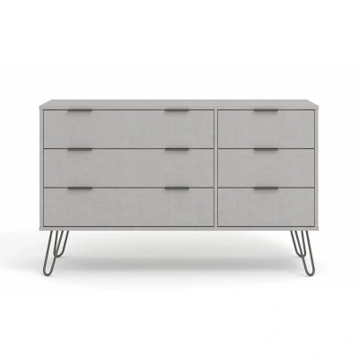 Home Source Wide Chest Organiser, 3+3 Industrial Storage Cabinet, Hairpin Legs, Grey, 6 Drawer, Engineered Wood